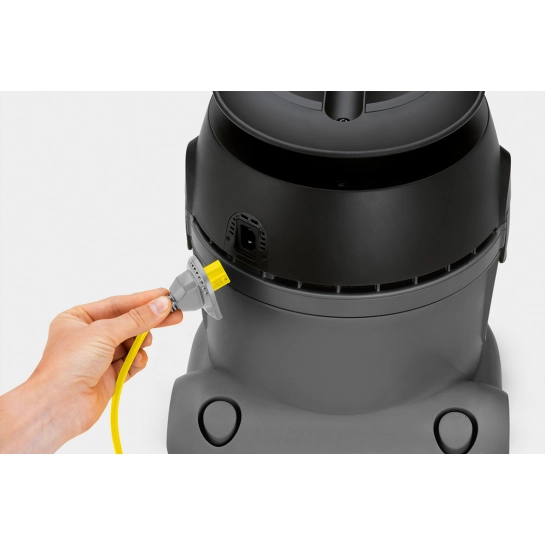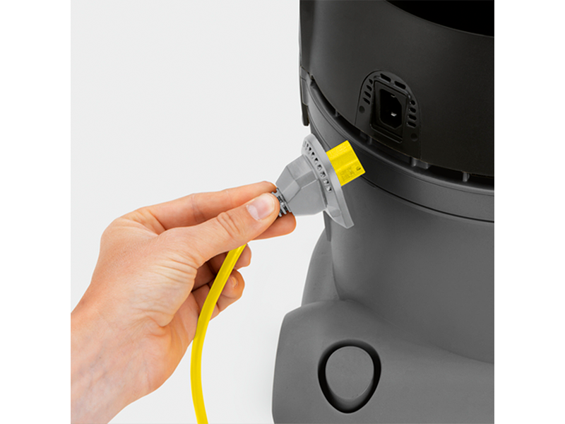 Пылесос сухой уборки T 10/1 Adv разработан специально для клининговых компаний. Он очень удобен в работе благодаря плавной регулировке силы всасывания, эргономичному антистатическому колену с защелкой и большому ножному выключателю, исключающему необходимость нагибаться. При этом стационарный основной фильтр позволяет производить уборку как с использованием фильтр-мешка, так и без него, а большой ударопрочный мусоросборник снабжен отбойником по всему периметру, защищающим мебель и прочие предметы от повреждений. Отсоединяемый сетевой кабель 12-метровой длины, снабженный хорошо заметной штепсельной вилкой желтого цвета, быстро и легко заменяется в случае повреждения. Катушка, сформованная в верхней части пылесоса, позволяет надежно закрепить кабель на время транспортировки. Так же надежно закрепляются на его корпусе и все необходимые принадлежности. В стандартную комплектацию входят 2 долговечные металлические удлинительные трубки длиной по 0,5 м, всасывающий шланг с антистатическим коленом, препятствующим разряду статического электричества, насадка для пола шириной 280 мм с регулировкой под твердые и ковровые покрытия, а также фильтр-мешок из нетканого материала.