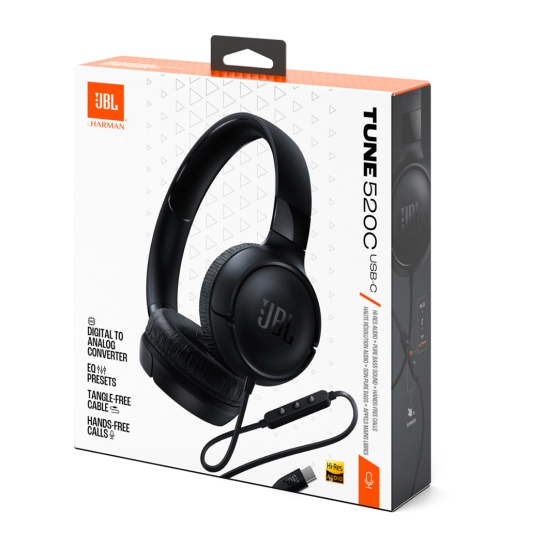 Описание Проводные наушники JBL Tune 520C USB-C Black (JBLT520CBLK)