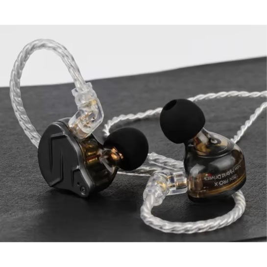 Внутри каждого корпуса расположено 2 излучателя: 10-мм динамик и арматурный твитер, дополненные платой активного кроссовера. В плане же непосредственно звуковых характеристик, модель продолжает почитаемую инженерами KZ акустическую парадигму, основанную на V-образной АЧХ – с форсированным басом и ощутимо подчеркнутыми ВЧ. К слову, бас отыгрывается плотно, разборчиво и информативно, тогда как акцентированные ВЧ звучат бодро, звонко и детально, вследствие чего общую звуковую сигнатуру KZ ZSN PRO X справедливо именовать скорее светлой, нежели притемненной. Средние частоты (в свою очередь) порадуют слушателя естественным окрасом тональной гаммы, развитой палитрой текстур и должной эмоциональностью. Завершает повествование об аудиопотенциале наушников их достаточно просторная стереопанорама, ранее встречавшаяся в более дорогих IEM-ах.