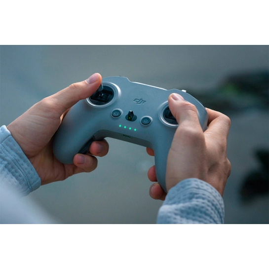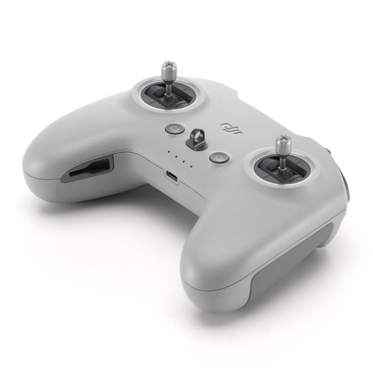 Разработанный для передачи видео DJI O4 с интегрированной антенной, он легче своего предшественника и может похвастаться более длительным временем работы. Стики управления удлинены на 2 мм, что позволяет управлять одним и двумя пальцами.