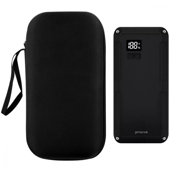 Proove Jumper выполнен из прочного ABS-пластика, устойчивого к износу и механическим повреждениям. Он оснащён литий-полимерным аккумулятором ёмкостью 12000 мАч, обеспечивающим пусковой ток 600A и пиковый ток до 1200A. Благодаря быстрой зарядке через порт Type-C (65W), устройство всегда готово к использованию.