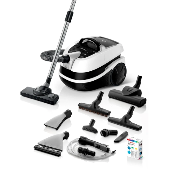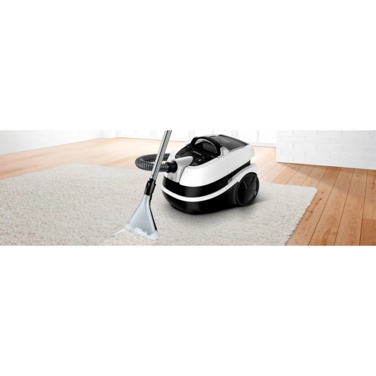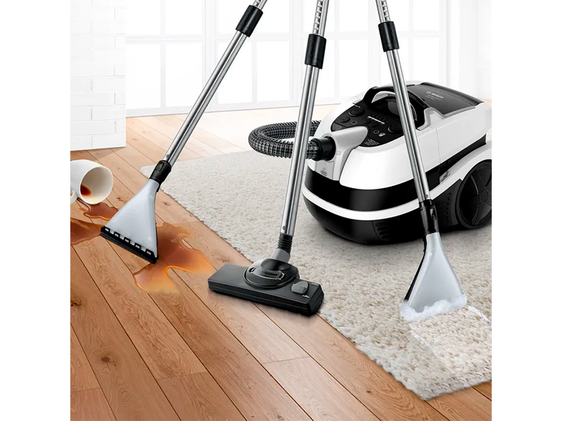Пылесос AquaWash & Clean имеет комплект специальных аксессуаров для влажной и сухой уборки. Теперь вы можете мыть ковры и обивку, собирать жидкость и пылесосить твердые поверхности и ковры одним пылесосом.