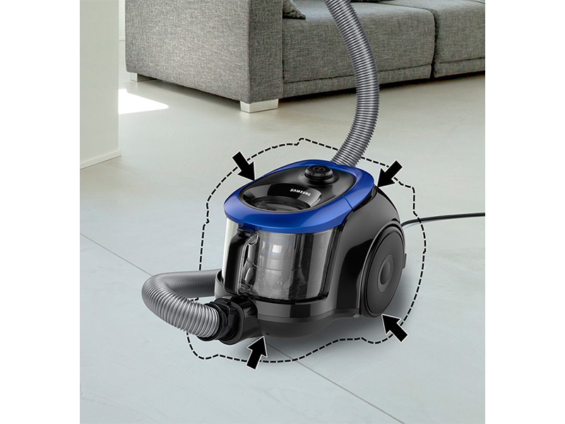 Компактная конструкция помогает быстро убирать весь дом с меньшими усилиями. Samsung VC2100 на 22% компактнее по размеру, поэтому его легко перемещать по дому.