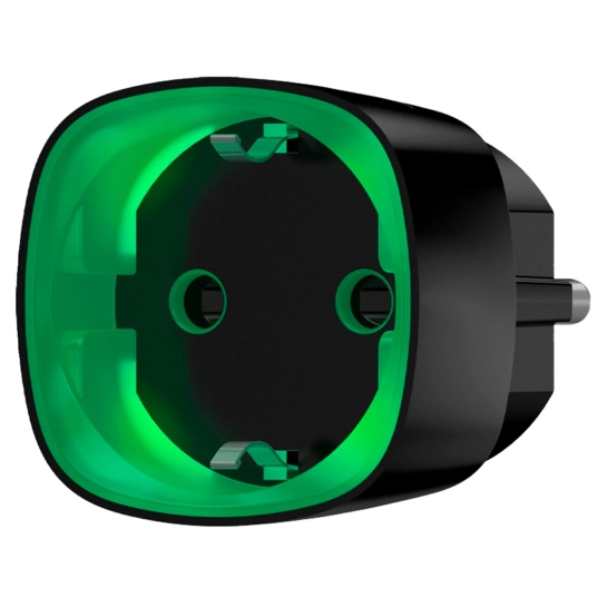 Ajax Socket – это радиоуправляемая интеллектуальная розетка со встроенным счетчиком энергопотребления. Конструктивно это переходник розетки-вилки европейского типа (Schuko type F), которая позволяет управлять электропитанием устройств общей нагрузкой до 2,5 кВт. Снабжена защитой от счетчика энергопотребления, перегрузки и индикацией уровня погрузки. К охранной системе Ajax подключается с помощью защищенного радиопротокола Jeweller с дальностью связи до 1000 метров при отсутствии помех к контрольной панели. Работа умной розетки не зависит от сигнала Wi-Fi в помещении, Ajax Socket продолжает работать без стабильного интернета.