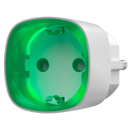 Ajax Socket – это радиоуправляемая интеллектуальная розетка со встроенным счетчиком энергопотребления. Конструктивно это переходник розетки-вилки европейского типа (Schuko type F), которая позволяет управлять электропитанием устройств общей нагрузкой до 2,5 кВт. Снабжена защитой от счетчика энергопотребления, перегрузки и индикацией уровня погрузки. К охранной системе Ajax подключается с помощью защищенного радиопротокола Jeweller с дальностью связи до 1000 метров при отсутствии помех к контрольной панели. Работа умной розетки не зависит от сигнала Wi-Fi в помещении, Ajax Socket продолжает работать без стабильного интернета.