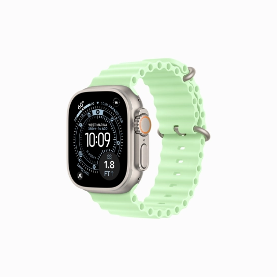 Ремешок Apple Ocean Band для Apple Watch Ultra 2 - специализированный водонепроницаемый ремешок для водных видов спорта и дайвинга. Доступен в базовом варианте и с дополнительным удлинителем Extension для использования поверх гидрокостюма.