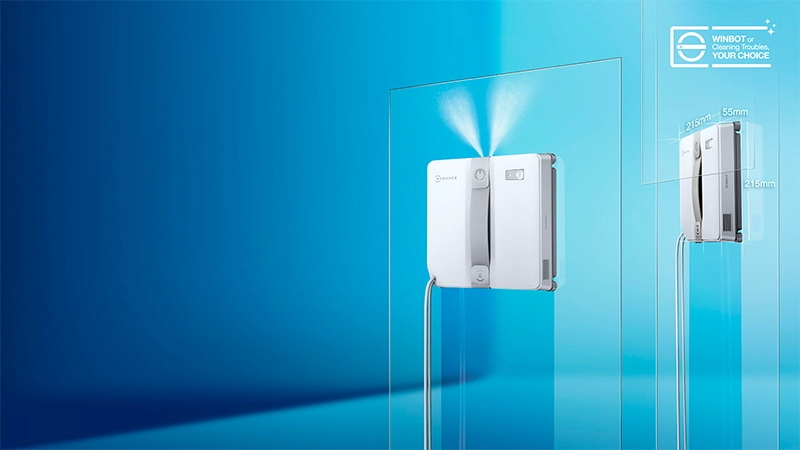 WINBOT MINI – самый компактный робот для мытья окон ECOVACS. WINBOT MINI может похвастаться уменьшенной на 30% толщиной и на 37% меньше по сравнению со своим предшественником. Компания ECOVACS достигла этого инженерного достижения благодаря высокоинтегрированной внутренней структуре, которая оптимизирует каждый сантиметр пространства, безбамперная конструкция снизила размер корпуса на 28 мм, оптимизированы двойные воздуховоды — толщину на 3 мм, а совершенно новый компактный вентилятор способствует уменьшению размера и массы конструкции. Благодаря длине одной стороны всего 215 мм и толщине 55 мм, WINBOT MINI идеально подходит для очистки узких окон и сложных для доступа мест