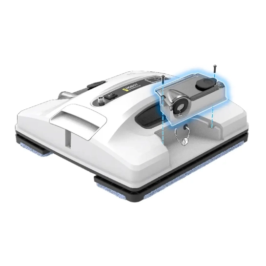 Робот для мытья окон Hobot 2s часто работает на большой высоте, поэтому для его дополнительной защиты есть несколько механизмов. Кабель питания крепится к корпусу прочным коннектором, который не отпадет при движениях. Также есть специальный страховочный трос, который предотвратит падение робота.