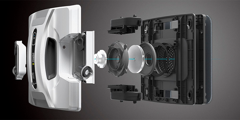 - Плотно фиксируется и удерживается на окнах благодаря новому безщеточному мотору, который создает вакуум, а специальные датчики отслеживают его мощность и эффективность.