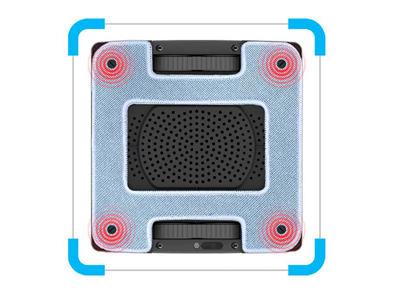 Hobot 2S отличается тем, что имеет два распылителя жидкости, расположенных по боках. Ультразвуковые форсунки подают на поверхность жидкость для мойки или чистящее вещество. При этом вода покрывает загрязнения равномерно, позволяя моющим насадкам быстро очистить их.