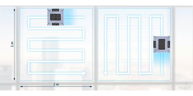 Робот мойщик окон Hobot 2s имеет несколько видов внутренних датчиков и режимов прохождения по поверхности для мойки. Очищает окно по траектории зигзага - сначала вверх-вниз, а потом влево-вправо. Датчик останавливает робот на краю и поворачивает в другую сторону.