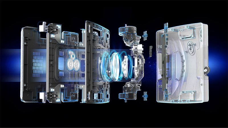 - Двойной ультразвуковой распылитель для воды: Ультразвуковые форсунки распыляют воду на мелкие частицы тумана, что позволяет более эффективную очистку.