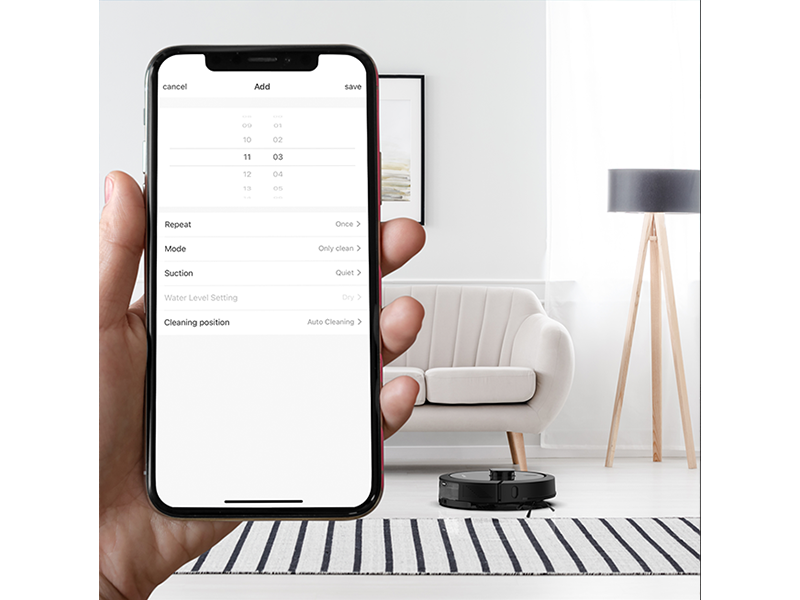 Контролируйте уборку вашего дома, где бы вы ни находились. Устанавливайте график уборки и контролируйте ее выполнение с помощью удобного приложения AENO. Также приложение позволяет установить режим уборки, виртуальные стены, узнать уровень заряда батареи и многое другое.
