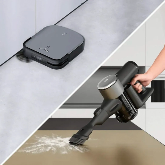 Новая система навигации разработана без применения всем привычного лидара и это позволило существенно снизить высоту корпуса робота до 95 мм.. Квадратная форма корпуса Ecovacs Combo X2 позволяет более эффективно чистить в углах и вдоль стен. Ротационные моющие диски практически полностью промывают зону вдоль стен без применения выдвижных механизмов с мопами.