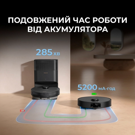 Благодаря аккумулятору большой емкости на 5200 мАч, D20 обеспечивает непрерывную уборку на протяжении довольно длительного времени.