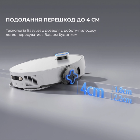 Легко преодолевайте дверные проемы и пороги высотой до 4 см с помощью технологии EasyLeap, которая позволяет скользить по вашему дому, гарантируя плавные движения.
