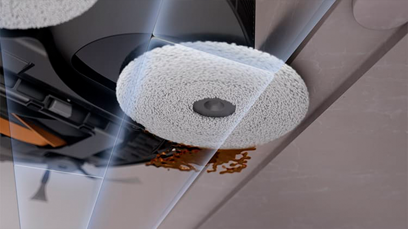 Выдвижной датчик DToF обеспечивает точную уборку в сложных и узких местах, например под диванами и кроватями, а подъемный датчик позволяет точно, перемещается по открытым пространствам.