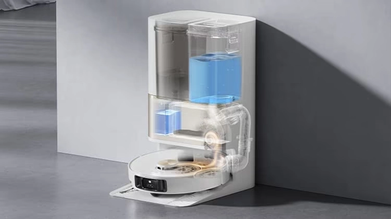 Dreame L50 Ultra быстро сушит швабры горячим воздухом после уборки, предотвращая образование плесени и неприятных запахов, а автоматическая дозаправка бака для мытья полов позволяет своевременно добавить воды работу-пылесосу, чтобы швабры оставались влажными и уборка проходила без задержек.