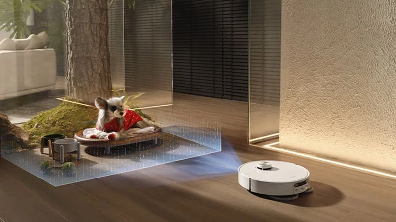 Автоматически распознаёт объекты вокруг домашних животных, такие как миски для корма и лотки, и позволяет вам выбирать, избегать их или убирать рядом с ними через приложение.