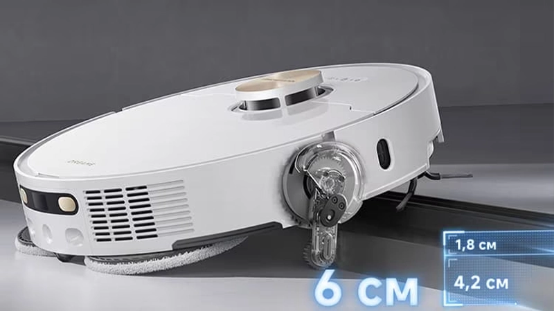 Система ProLeap оснащена роботизированными выдвижными ножками, которые поднимают шасси, позволяя роботу преодолевать сложные поверхности, такие как дверные пороги и небольшие ступеньки. Эта усовершенствованная система предотвращает застревание пылесоса, обеспечивая бесперебойную и эффективную уборку. Легко и просто проходит пороги и ступеньки высотой до 6 см.