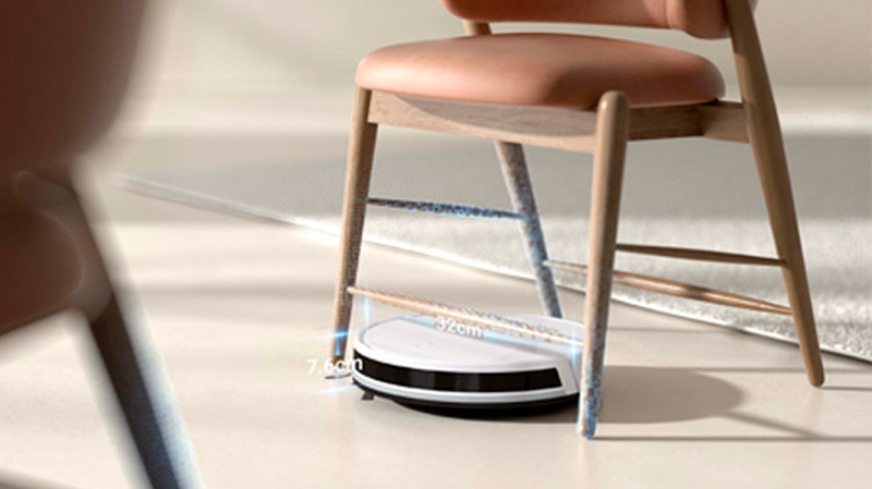 Всего 7,6 см в высоту и 32 см в диаметре - вот насколько компактен робот-пылесос Mova E10. Благодаря своим миниатюрным размерам, он легко проникает в самые узкие места и без труда убирает под мебелью. Теперь достичь мест, которые раньше оставались недоступными, стало проще простого.