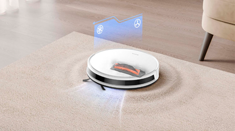 При переходе на ковровое покрытие робот-пылесос автоматически увеличивает интенсивность всасывания, чтобы эффективно собрать мельчайшие частицы пыли и грязи, обеспечивая глубокую очистку ворса.
