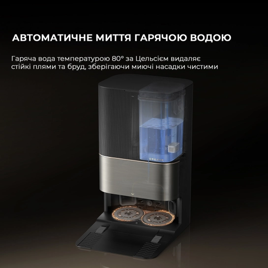 Получите чистый пол благодаря системе автоматической очистки насадок. Горячая вода температурой 80 градусов по Цельсию удаляет стойкие пятна и жир, сохраняя моющие насадки свежими и готовыми к следующей уборке. Встроенный ингибитор накипи предотвращает ее накопление, обеспечивая длительную работу и защиту пылесоса.