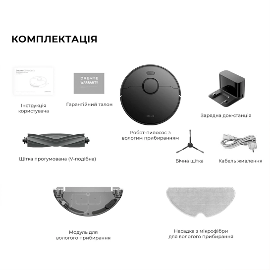 Приобретая робот-пылесос Dreame D9 MAX Gen 2, вы получаете все необходимое для эффективной уборки вашего помещения. В состав комплекта включено: