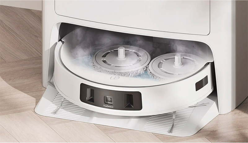 Робот пылесос с влажной уборкой T20 Deebot комплектуется современной базой самообслуживания (All-in-One). Она обеспечивает роботу полное обслуживание. Станция высасывает из контейнера робота мусор и продувает фильтр. Во время влажной уборки станция промывает моющие насадки робота горячей водой (55ºC), а по окончанию производит их сушку горячим воздухом.