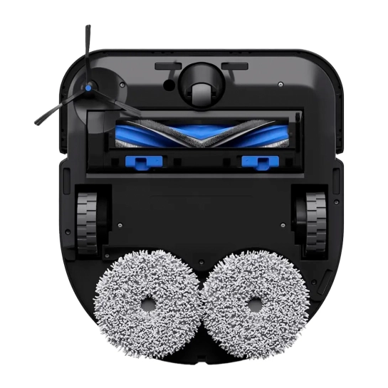 Deebot Ozmo X5 Pro Omni убирает сухой мусор с помощью основной щетки ZeroTangle: роликовая комбинированная турбощетка с наклонными плоскими щетинками отлично очищает любые поверхности от пыли, грязи, крошек. А зубчатый гребень, расположенный под щеткой, помогает распутывать шерсть и волосы, поэтому они не наматываются на валик турбощетки.