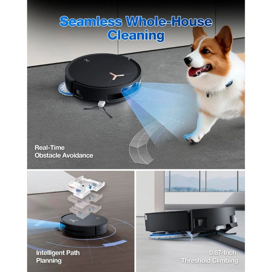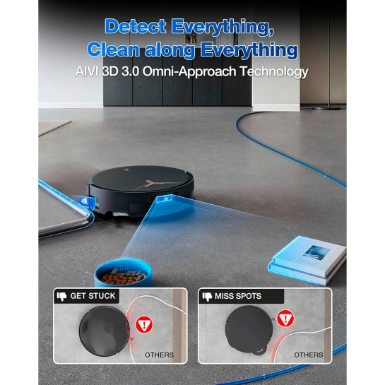 AIVI 3D 3.0 Omni-Approach, работающий на базе модели языка зрения (VLM), – это революционный прогресс, который революционизирует избегание помех и уборку DEEBOT. Эта инновационная функция позволяет T50 MAX точно обнаруживать контуры помех с помощью встроенной камеры и модулей структурированного освещения. В отличие от традиционных моделей искусственного интеллекта, которые ограничиваются предопределенными объектами, модель языка зрения (VLM) предлагает беспрецедентную универсальность, точно распознавая все вокруг. Изучая контуры объектов в вашем доме, она избегает замятия и обеспечивает более тщательную уборку. Эта интеллектуальная технология обеспечивает бесперебойную, беззаботную и высокоэффективную уборку каждый раз, позволяя T50 MAX убирать вдоль помех, не избегая их.