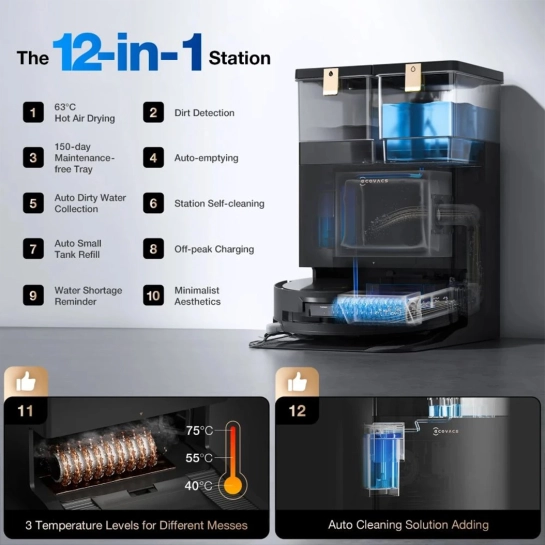 ECOVACS DEEBOT X8 оснащен сверхскоростным мотором с мощностью всасывания 18 000 Па для достижения непревзойденной эффективности уборки.
