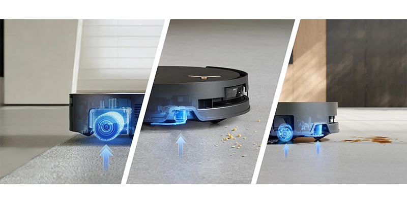 Благодаря встроенному радару и оптимизации конструкции, DEEBOT X9 PRO OMNI сохранил ультратонкий корпус толщиной всего 98 мм. Оснащённый ведущими колёсами с высоким сцеплением и специальной системой преодоления препятствий, DEEBOT легко преодолевает препятствия высотой до 20 мм как в сухую, так и влажную погоду.