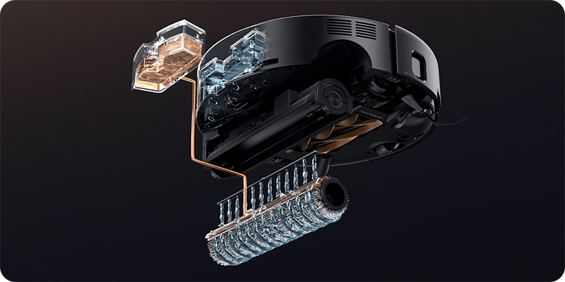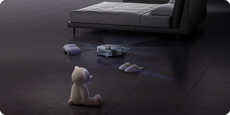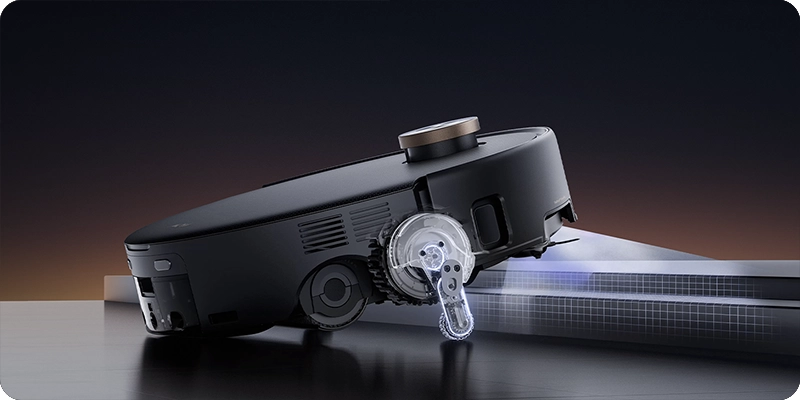 - Навигация FlexScope. Выдвижной DToF-датчик и бионическая боковая щетка позволяют роботу убирать в «мертвых зонах» — в углах и под низкой мебелью