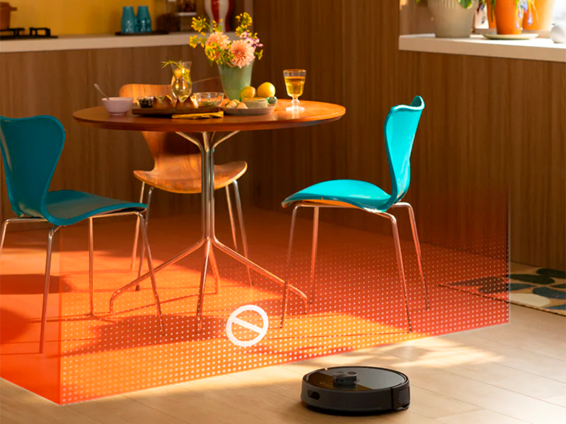 Система навигации определяет сложные зоны, такие как пространство под мебелью, и может автоматически создавать запретные участки, чтобы обеспечить непрерывную и эффективную уборку.