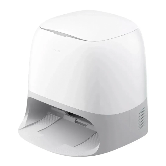 Roborock Qrevo Curv укомплектован многофункциональной станцией самоочистки, которая обеспечивает автономную работу гаджета.