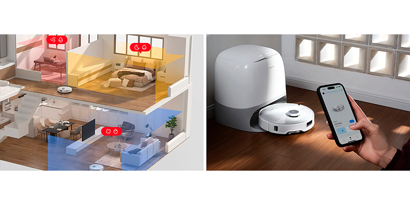 Умный гаджет составляет и хранит в памяти до 4 карт уборки. Самостоятельно зонирует каждое помещение на комнаты и определяет для них нужные режимы очистки, в зависимости от типа покрытия и степени загрязнения полов. А значит, робота можно комфортно использовать в многоуровневых квартирах или домах с несколькими этажами.