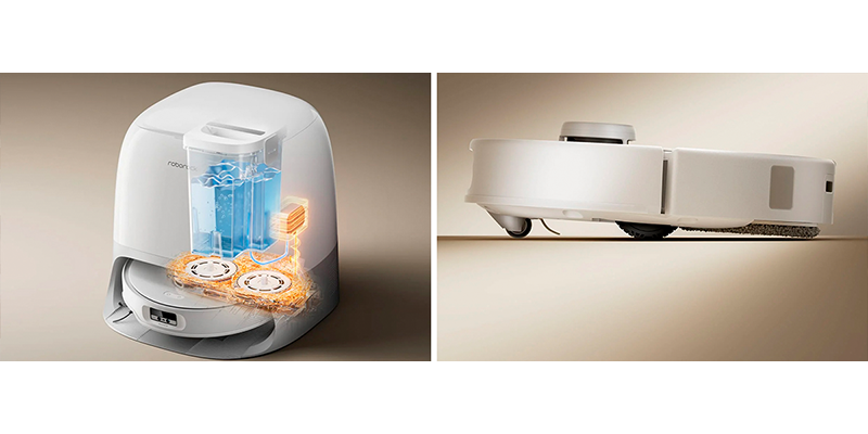 На станции робот опорожняет пылесборник от мусора и дозаправляет бак чистой водой. А после окончания уборки моет горячей водой и высушивает горячим воздухом швабры, чтобы предотвратить появление неприятного запаха и плесени.