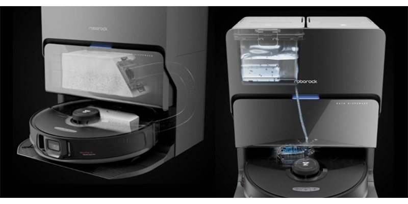 Станция Roborock S8 Max Ultra очищает пылесборник от мусора и пополняет недостающий объем жидкости в баке