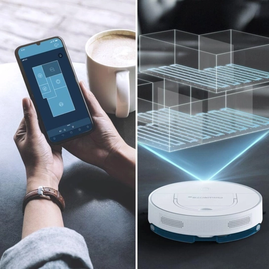 Ультратонкий робот-пилосос висотою всього 8 см забезпечує якісне прибирання навіть під низькими меблями завдяки технології лазерної навігації без використання LIDAR-башти.