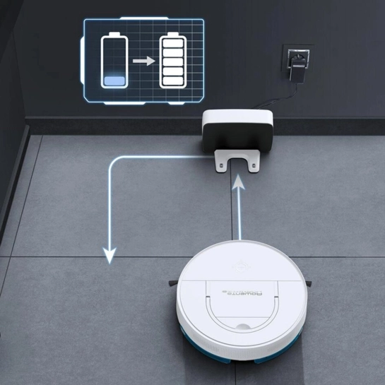 Літій-іонний акумулятор працює до 120 хвилин на одному заряді — цього достатньо, щоб прибрати до 120 квадратних метрів. Акумулятор також оснащений функцією Charge&Go для автоматичного заряджання та продовження сеансу прибирання.