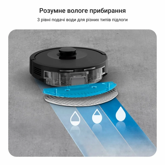 Робот-пылесос обеспечивает точность и эффективность уборки благодаря системе Smart Aqua Power с 3 уровнями подачи воды, которые можно установить в зависимости от типа пола.