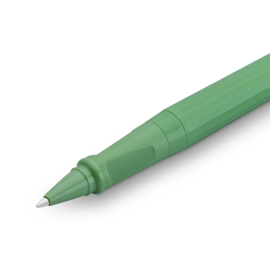 Роллер Perkeo в цвете Jungle Green предлагает современный дизайн для входа в мир письма, независимо от возраста. Визуально восьмигранный колпачок и 16-гранное древко идеально гармонируют друг с другом, ведь разные углы поверхностей создают неповторимую игру света и тени.