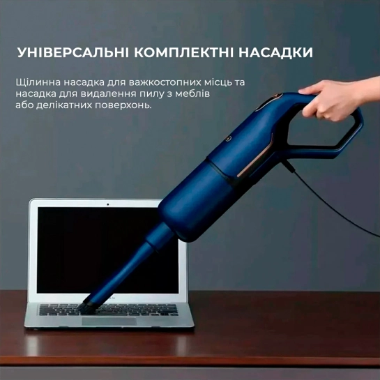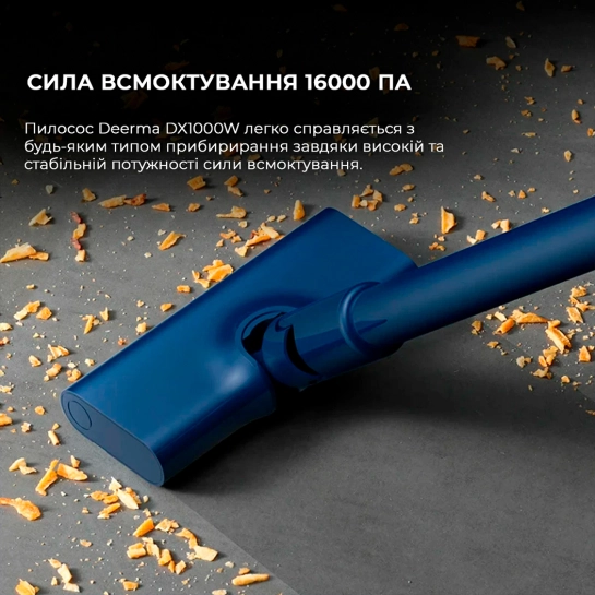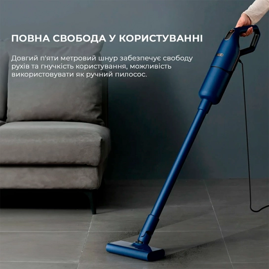 С Deerma Corded Stick Vacuum Cleaner Blue (DX1000) вы получаете три дополнительных насадки: для пола, мягкой мебели и узких щелей. Это позволяет эффективно очищать разные поверхности и труднодоступные места. Кроме того, возможность использования устройства в качестве ручного пылесоса позволяет быстро и легко очищать кухонные полки, углы и места под мебелью или ухаживать за диванными подушками.