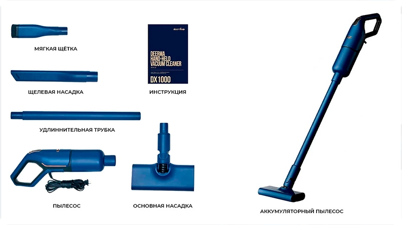 Комплектация Deerma Corded Stick Vacuum Cleaner Blue (DX1000)