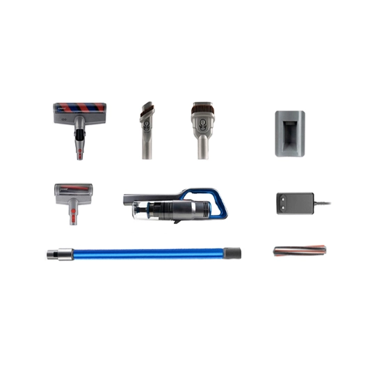 Сочетание металла и пластика в конструкции пылесоса существенно продлит срок его эксплуатации. За питание ручного пылесоса отвечает 7 аккумуляторных батарей емкостью 2500 мАч. При полностью заряженном аккумуляторе вы сможете непрерывно пылесосить помещение в течение 60 минут. За это время вы сможете очистить не только напольное покрытие, но и мусор, скопившийся на мебели и под мебелью, в углах комнаты, салоне автомобиля. Jimmy JV63 комплектуется несколькими насадками, которые упростят процесс уборки разных комнат и предметов интерьера.