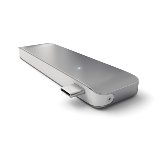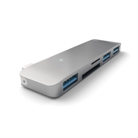 Satechi Type-C USB Hub - это простой и качественный хаб, предназначенный для подключения к порту Thunderbolt на MacBook Pro для максимальной пропускной способности, чтобы использовать больше портов с минимальной занимаемой площадью. Хаб очень компактный, стильный и выполнен в строгом дизайне, благодаря чему он идеально сочитается с продукцией Apple. С другой стороны коннекторы и корпус устройства изготовлены из анодированого алюминия, что защищает его от электромагнитных помех и делает его легким, а также прочным.