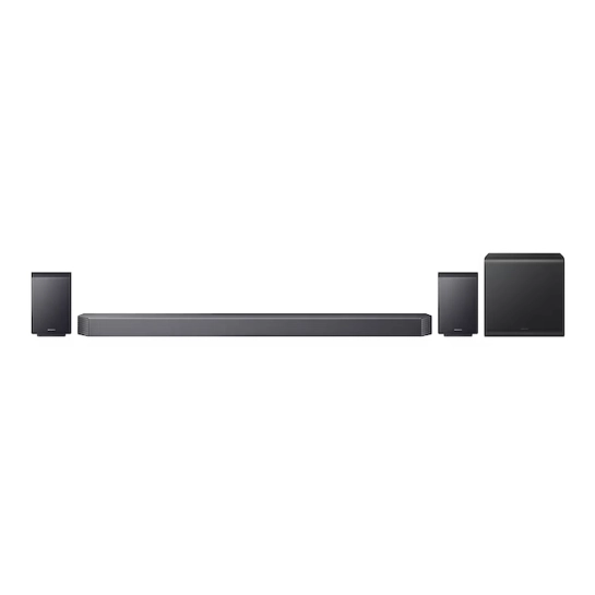 Саундбар Q-серии Samsung HW-Q930F (9.1.4, 2025) — это полноценная система объёмного звучания для домашнего кинотеатра, разработанная так, чтобы внешний вид и звук работали в унисон. Внешне лаконичная основная панель легко размещается под телевизором, а в комплект входят беспроводной сабвуфер и тыловые модульные колонки, что позволяет получить действительно окружающее звучание без громоздкой проводной разводки.