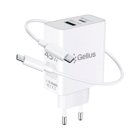 Характеристики для Сетевое зарядное устройство Gelius X-Duo Pro 45W USB to Type-C White + Cable Type-C to Type-C