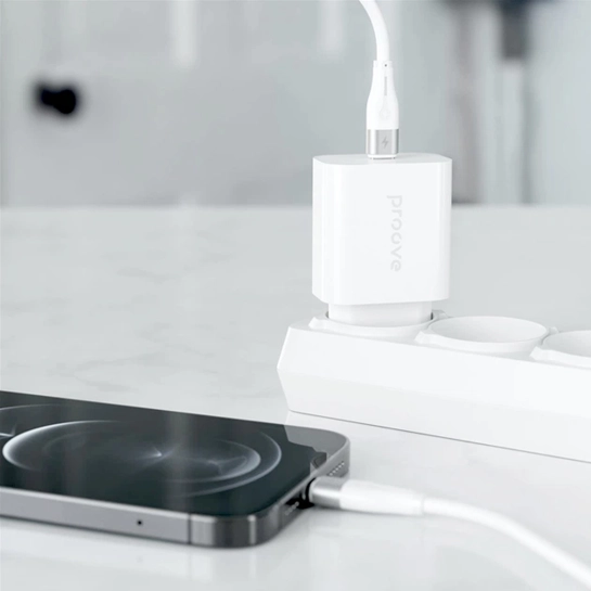 Сетевое зарядное устройство Proove Rapid 20W (Type-C) + Кабель Type-C to Lightning White — это компактный и функциональный адаптер, который обеспечит быструю и безопасную зарядку вашего смартфона и других гаджетов дома и в поездке.